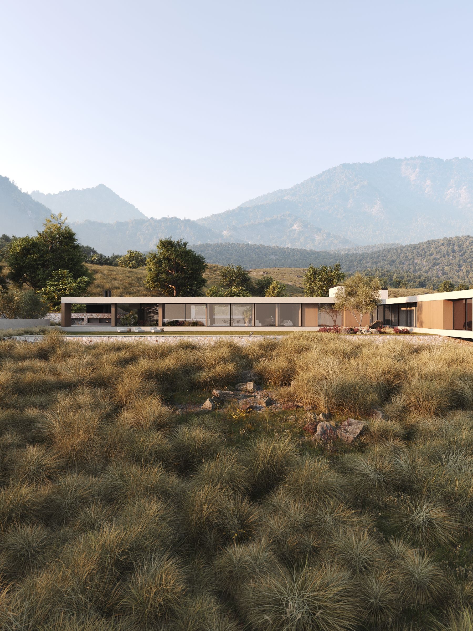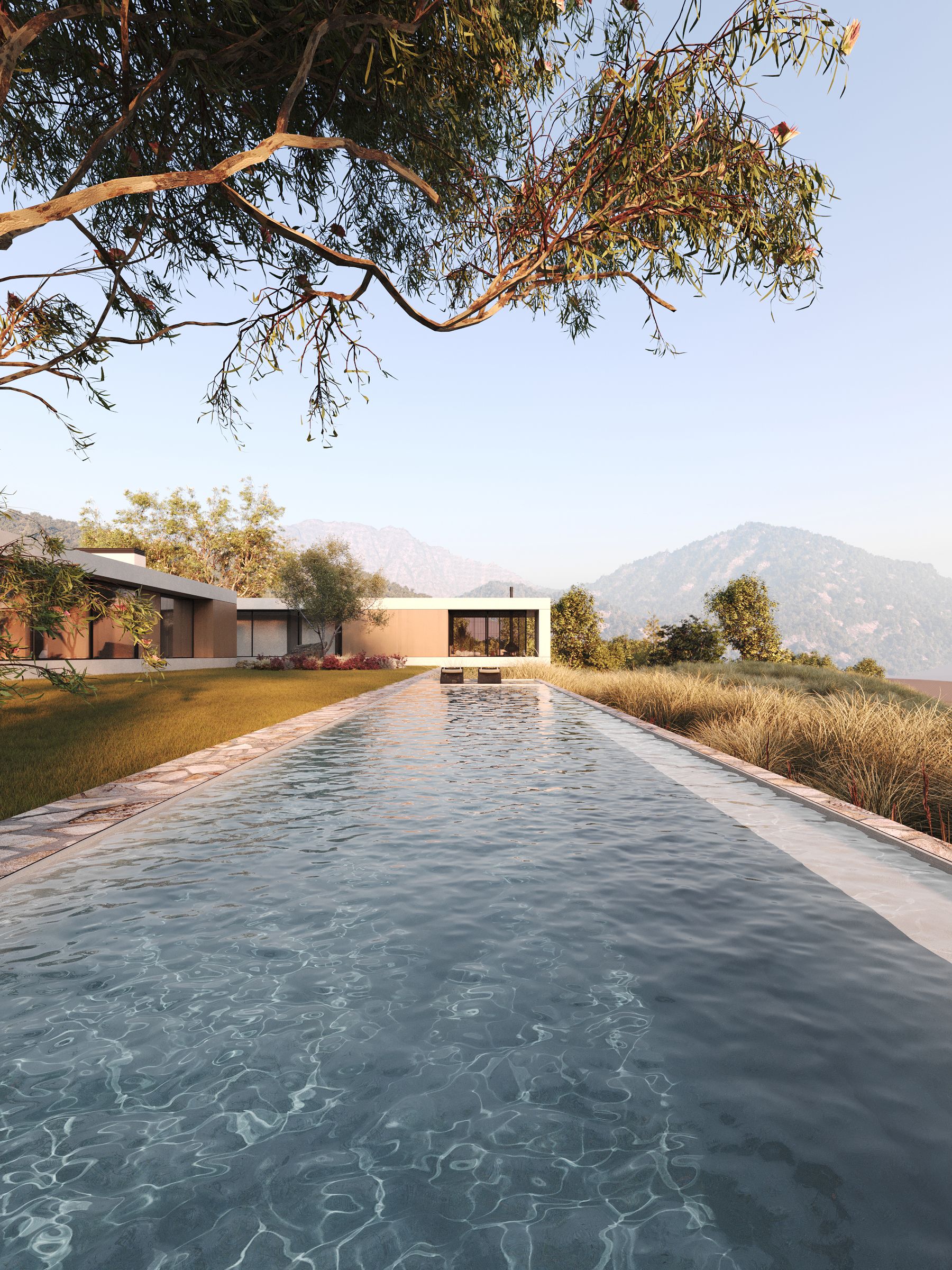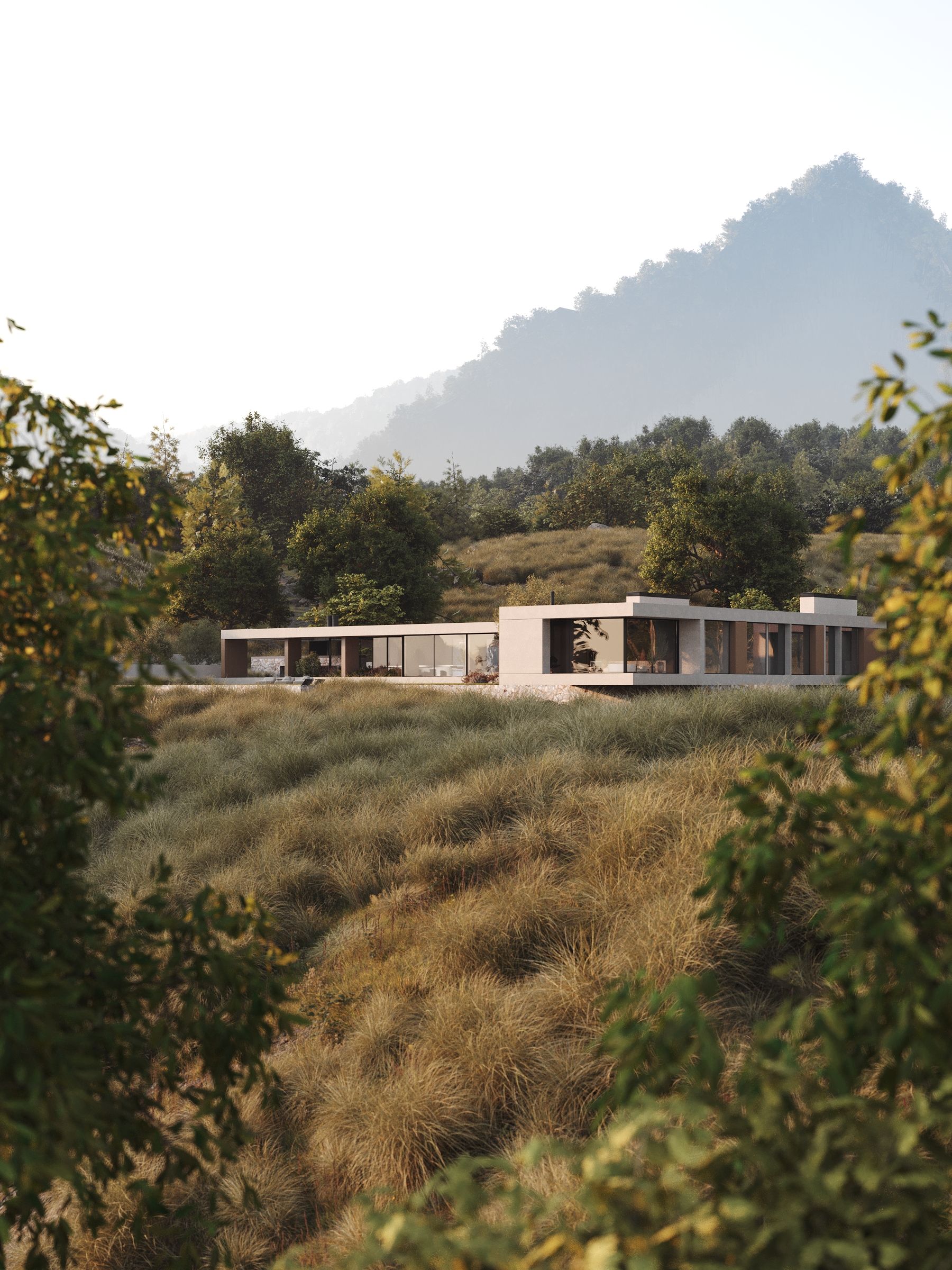 A private house in New Zealand, located on a picturesque hill, amazes with its beauty and functionality. The architecture of the house embodies modern trends, harmoniously combining elegance and functionality. The one-story building is located on a hill, offering magnificent views of the surrounding nature. Large panoramic windows of the house allow you to enjoy the picturesque landscapes at any time of the day, creating a feeling of unity with the surrounding nature. Next to the house there is a small swimming pool surrounded by a well-kept garden. This is an ideal place for rest and relaxation, where you can enjoying nature and comfort.