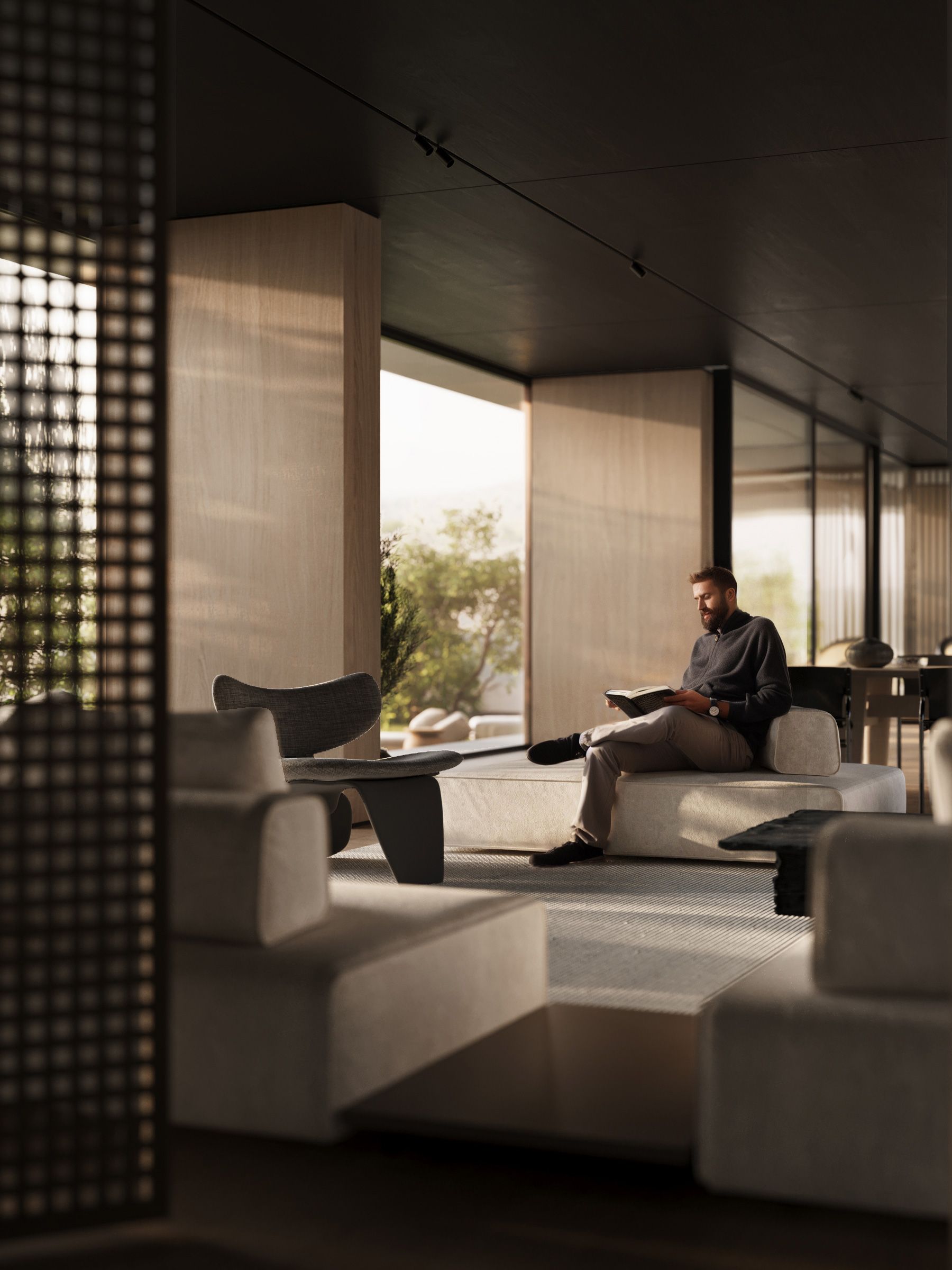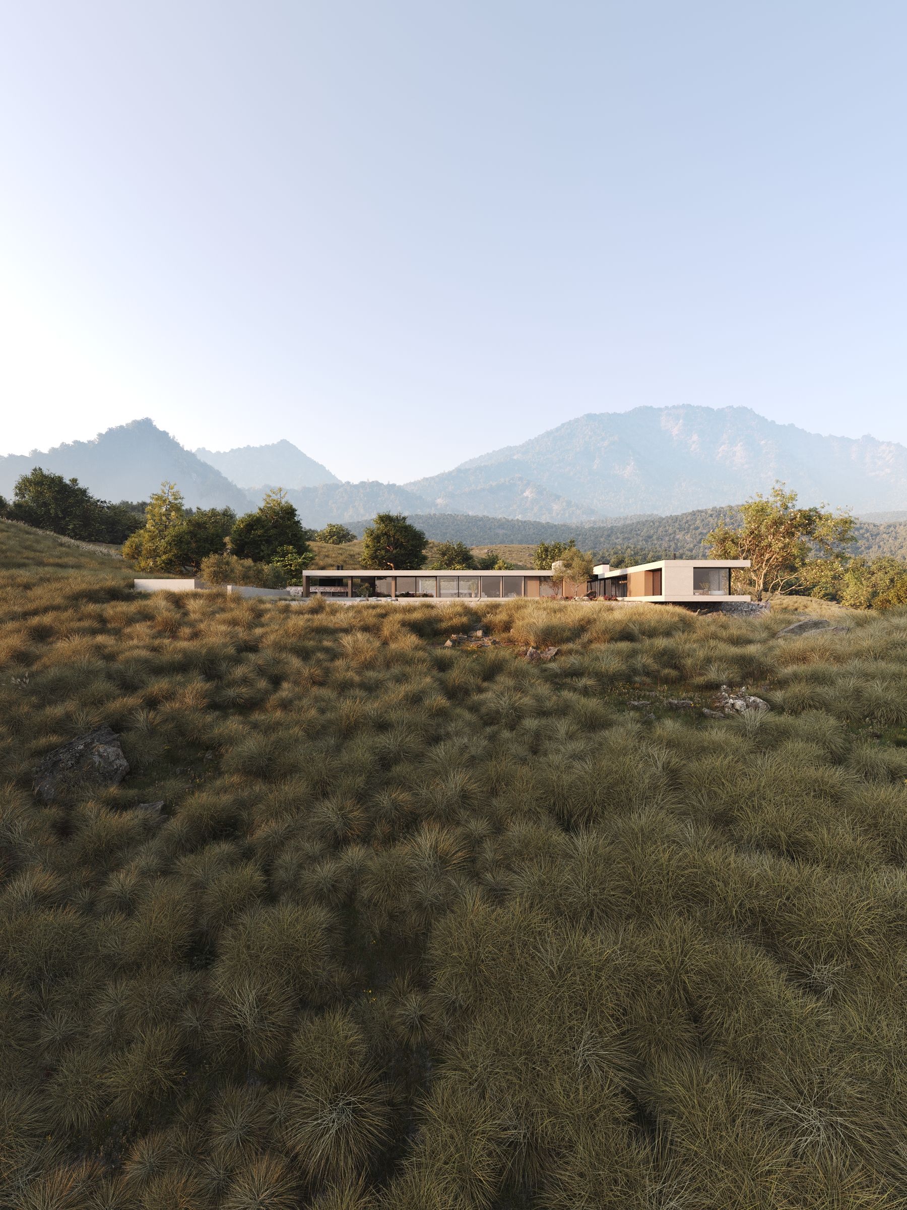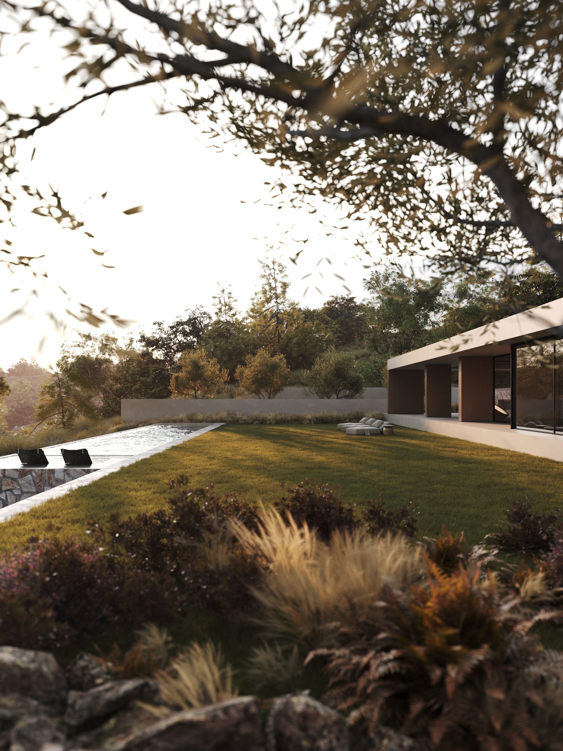 A private house in New Zealand, located on a picturesque hill, amazes with its beauty and functionality. The architecture of the house embodies modern trends, harmoniously combining elegance and functionality. The one-story building is located on a hill, offering magnificent views of the surrounding nature. Large panoramic windows of the house allow you to enjoy the picturesque landscapes at any time of the day, creating a feeling of unity with the surrounding nature. Next to the house there is a small swimming pool surrounded by a well-kept garden. This is an ideal place for rest and relaxation, where you can enjoying nature and comfort.