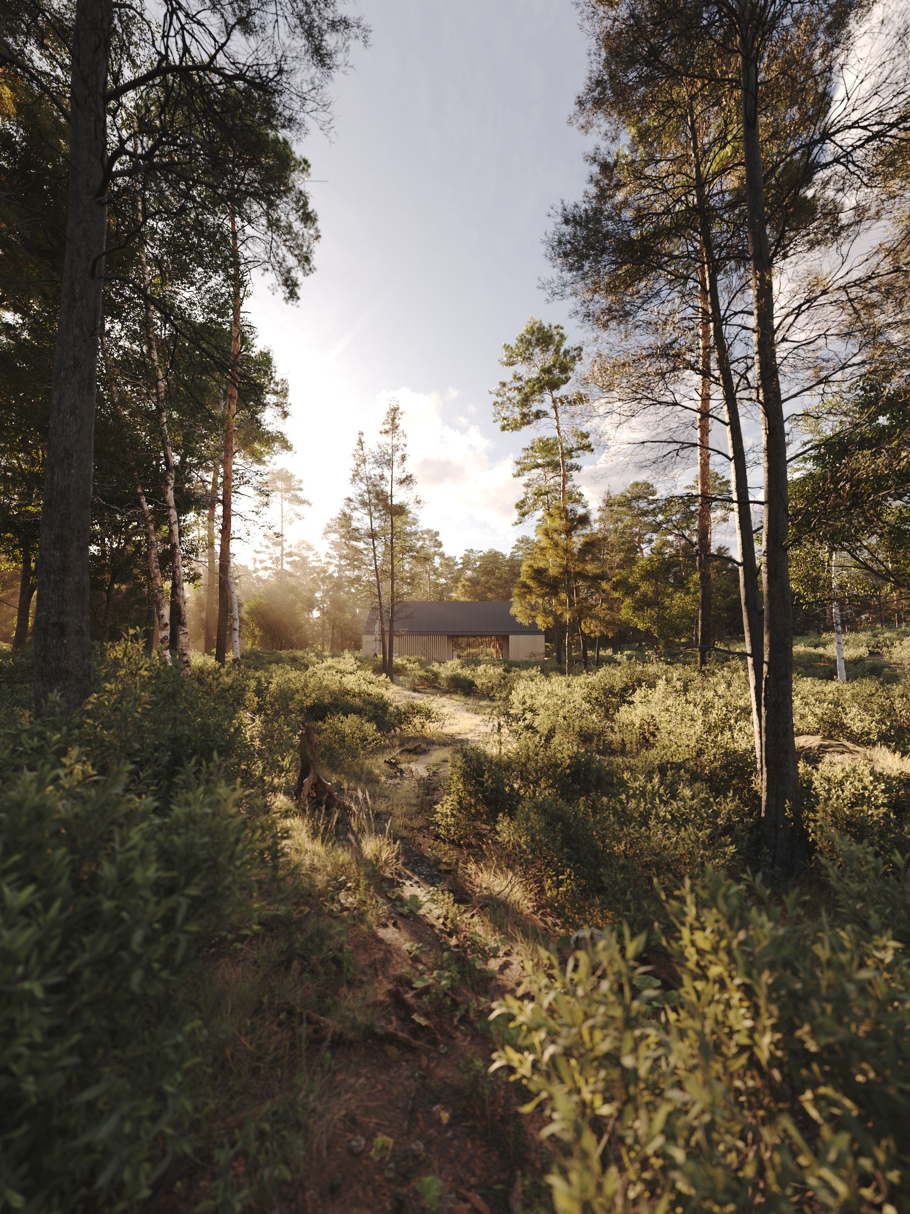 The main advantage of the house is its panoramic windows, which allow residents to enjoy breathtaking views of the forest around. Thanks to them, maximum natural light penetrates into the house and creates a feeling of spaciousness.
